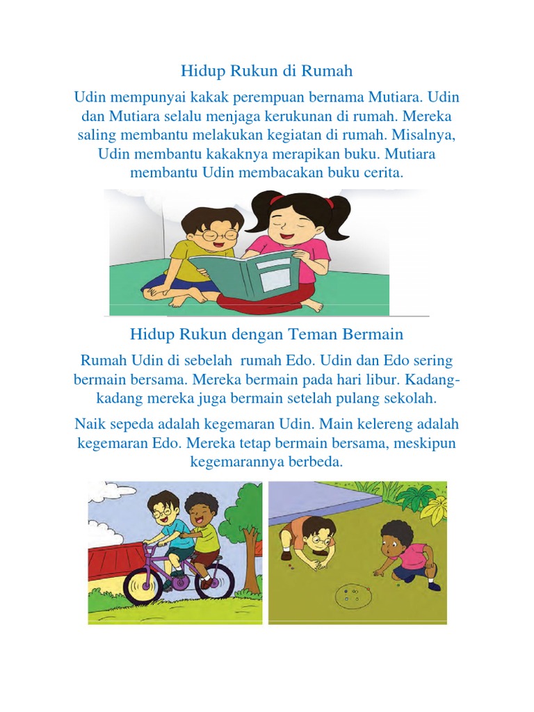 Cerita hidup rukun. Kita sebagai siswa siswi di sekolah harus selalu hidup rukun bersama teman-teman mereka di kelas. Memahami pengetahuan faktual dengan cara mengamati mendengar melihat membaca dan. Isi hati Allah disampaikan oleh Yesus dalam Yohanes 17 bahawa orang yang hidup rukun di dalam kasih Allah adalah orang yang sentiasa diancam oleh si Jahat kerana mereka bersatu sebagai keluarga Allah ayat 15-16 sehingga Yesus memohon agar manusia sentiasa dilindungi oleh kebenaran firman Allah selepas Dia kembali ke Syurga ayat 17.