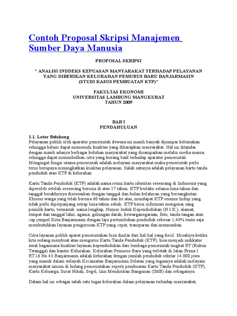 Judul Skripsi Manajemen Sdm Ter. Contoh proposal skripsi manajemen sumber daya manusia proposal skripsi analisi inddeks kepuasan manyarakat terhadap pelayanan yang diberikan kelurahan pemurus baru banjarmasin studi kasus pembuatan ktp fakultas ekonomi universitas lambung mangkurat tahun 2009 bab i.