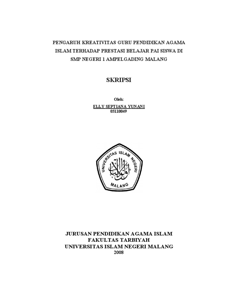 03110049 Pengaruh Kreativitas Guru Pendidikan Agama Islam Terhadap Prestasi Belajar Pai Siswa Di Smp Negeri 1 Ampelgading Malang