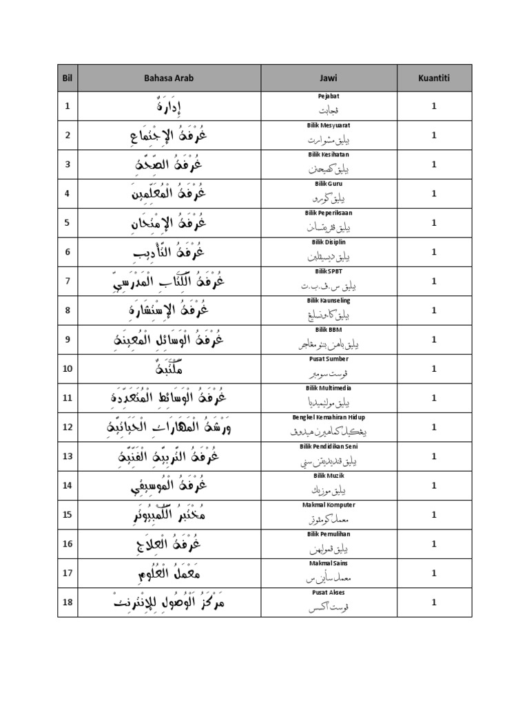 Label Bilik Khas Bangunan Sekolah Dalam Bahasa Arab
